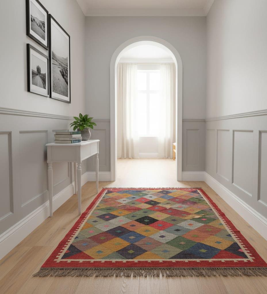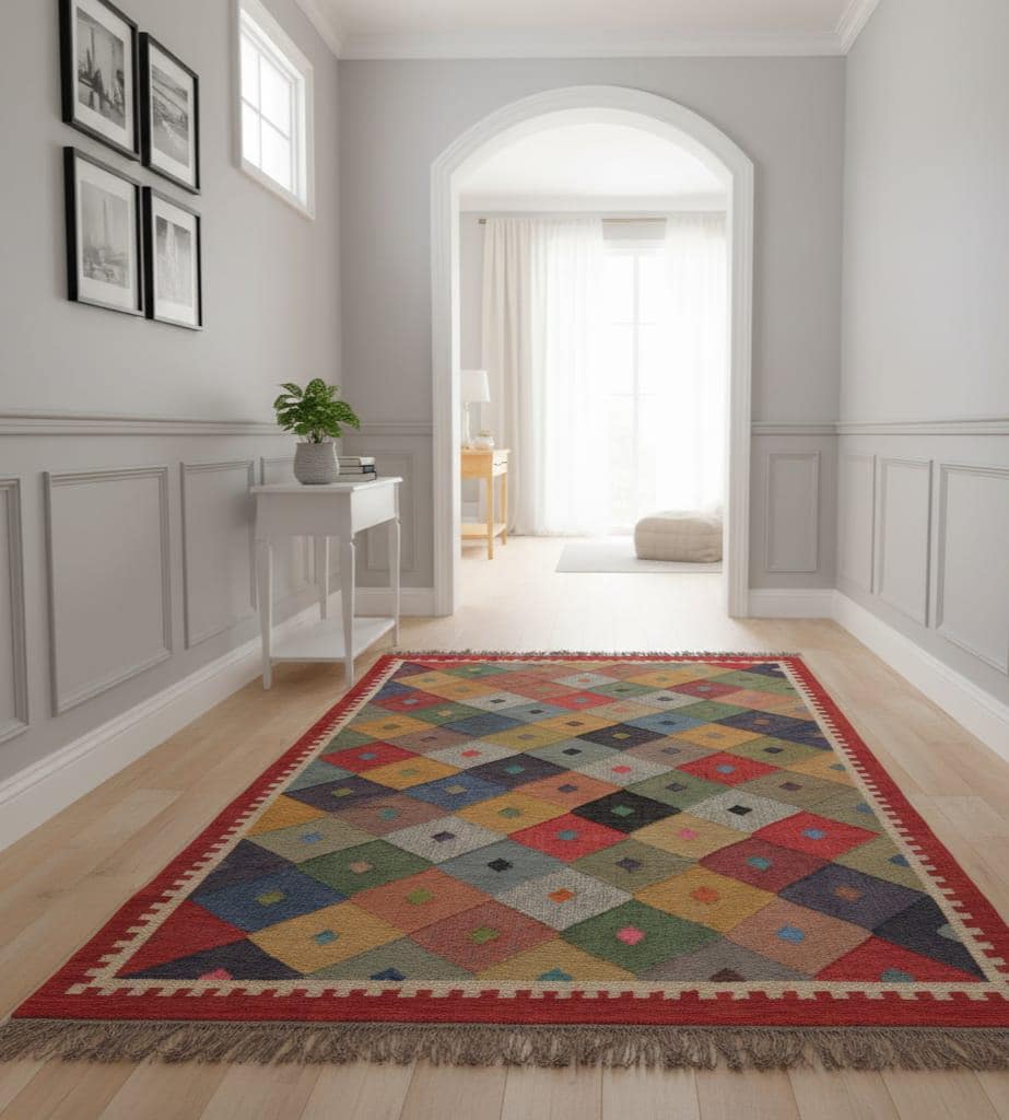Whether you place it in the center of your living room or alongside your furniture as a hallway runner, the Wool Jute kilim rug is sure to become a focal point of your interior design. Its natural materials, artisanal craftsmanship, and boho-inspired allure create a statement piece that not only enhances your decor but also showcases your appreciation for timeless beauty and sustainable craftsmanship.